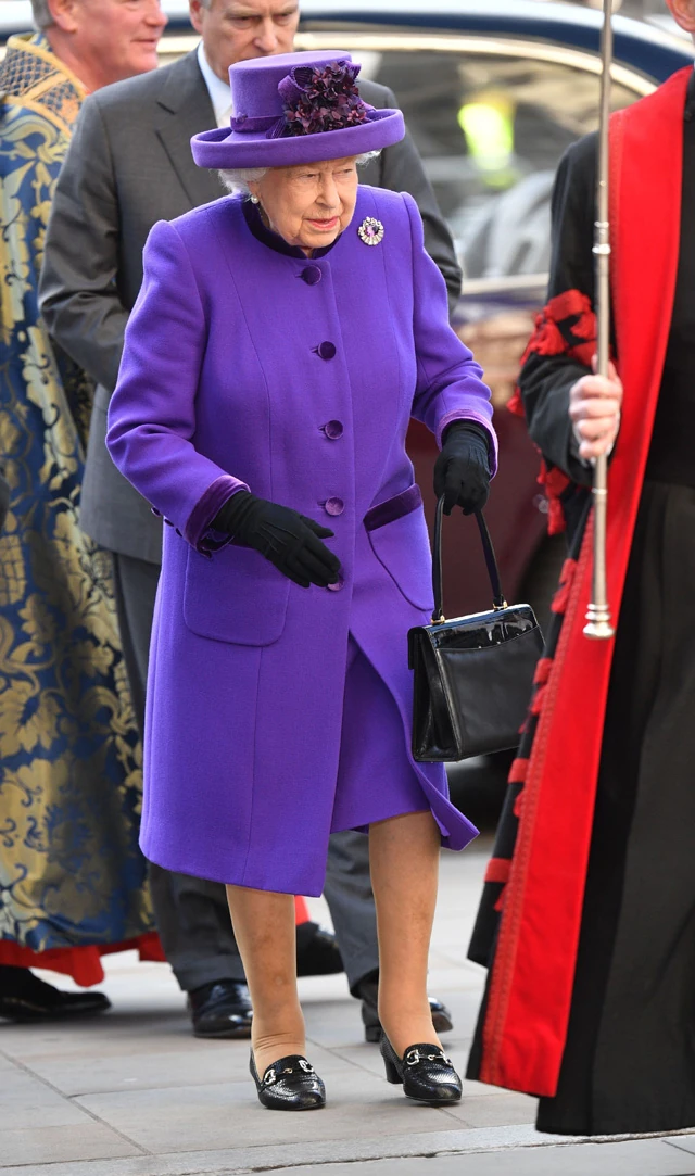 Erzsébet királynő elegáns lila szettben érkezett a Westminsteri apátsághoz: