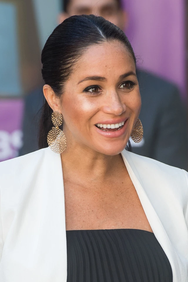Az Oscar gálán lehet, hogy nem volt ott, viszont cseppet sem volt kevésbé csinos a marokkói találkozója alkalmával. Meghan Markle egy finom, pliszírozott fekete, térdig érő, ujjatlan ruhában lépett a nyilvánosság elé, amit egy fehér blézerrel és fekete nyitott hátú magas sarkúval viselt.