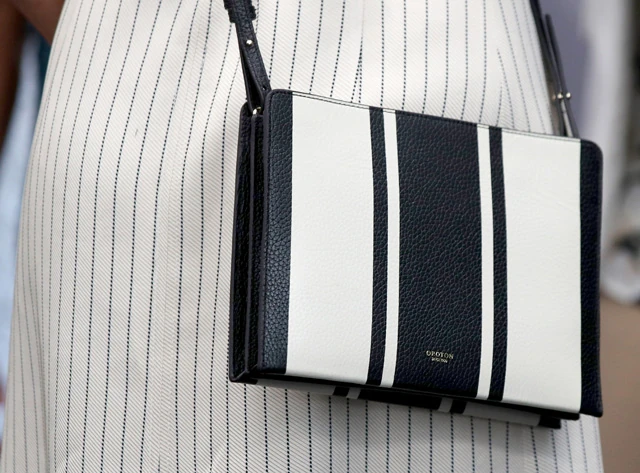 Nem csak a csíkos ruha, de a kiegészítők és a lezserül vállára dobott blézer is nagyon ütős volt!