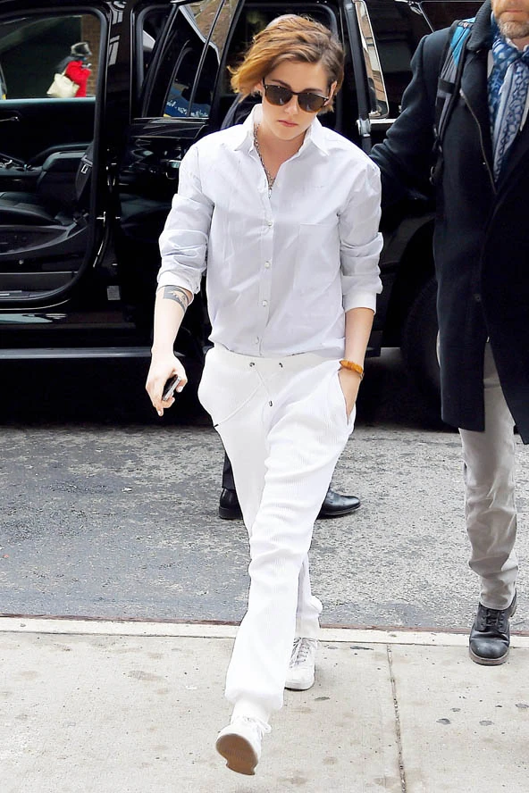 A színésznő eddig sem éppen a nőies stílusáról volt híres. Inkább punkos volt a vörös szőnyegen is, most azonban úgy tűnik más stílust erőltet. Egyrészt a frizurája ugye nőiesebb lett, miközben ezen a héten ez már a harmadik igazán fiús szettje, de most nem punkos, inkább olyan mint modern dandy. Szerintünk klassz, neked hogy tetszik?