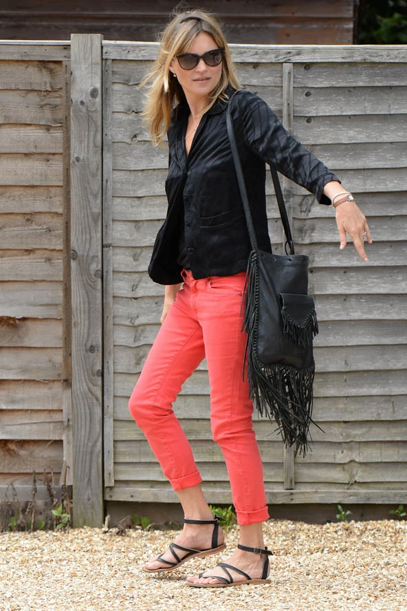 A 40 éves modellről tudjuk, hogy imádja a fekete szetteket, sőt szinte kizárólag csak ilyen összeállításokban jelenik meg a hétköznapokban és a vörös szőnyegen egyaránt. Nos, mielőtt még bárki is unalmasnak titulálná, érdemes megnézni a legújabb lookját, ami minden csak nem uncsi. Kate Moss fekete pólót, selyem kiskabátot viselt, de a változatosság kedvéért feltűnő, élénk korallszínű nadrággal dobta fel a monokróm szettet, amihez rojtos, igazán Kate Mossosan hippis válltáskát passzintott. Egy olaszországi fotózás után így indultak útnak vacsorázni férjével, Jamie Hince-szel és lányával, Lila Grace-el a cotswoldi hétvégi házukból. Valójában mi sem szoktunk semmi másra vágyni egy hosszú és fárasztó Gucci fotózás után, mint az angol vidéki nyaralónkban pihengetni rocksztár férjünk társaságában. Ki mondta, hogy Kate Moss élete könnyű?