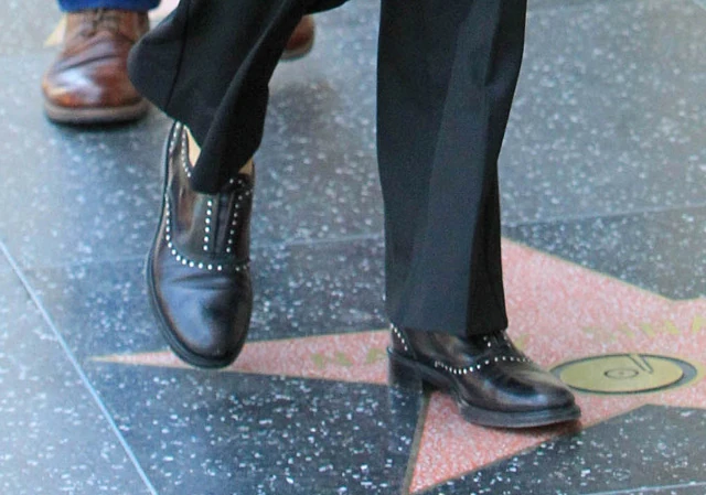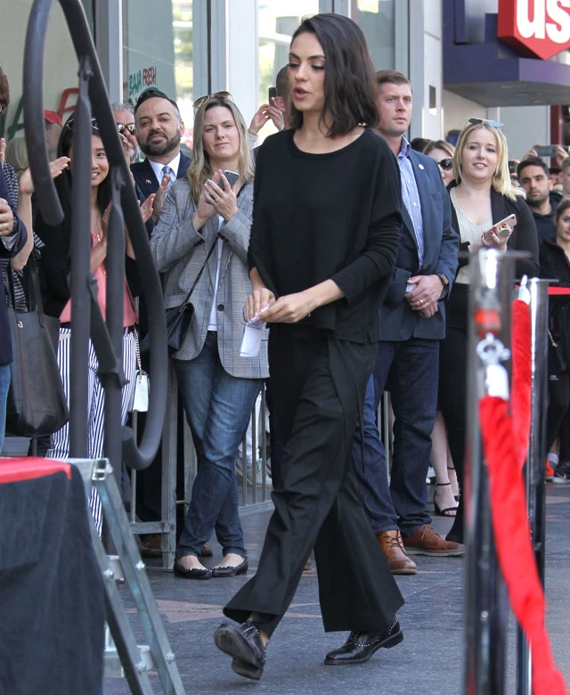 Az Avatar sztárja csillagavató ünnepségén Mila Kunis mondta a méltató beszédet. Tudta, hogy ezen az eseményen nem ő van a középpontban, ezért aztán a lehető legegyszerűbb összeállítás mellett döntött. Egy fekete ing, fekete nadrág kombinációra szavazott, és ezúttal a klasszikus férfi cipőket idéző lábbelije volt a megjelenésének az éke, ami váratlanul vagánnyá tette ezt az igen unalmasnak látszó outfitet.