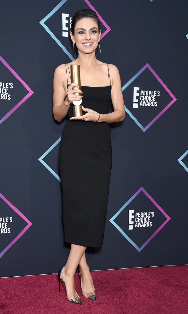 Mila Kunis a rendezvényen egy fekete dupla spagettipántos Alex Perry ruhát viselt, amelyben csak úgy tündökölt a rendezvényen. Az egyszerű ruhához egy Christian Louboutin magas sarkút vett fel.