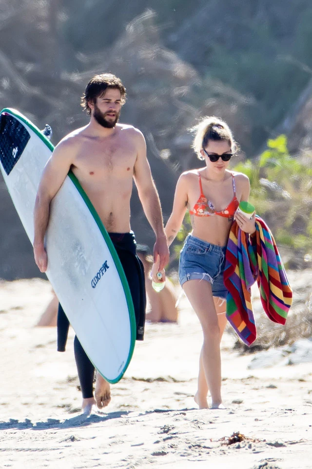 A boldog párt Malibu tengerpartján kapták lencsevégre, ahol egy tökéletes nyári napot töltöttek el napozással, szörfözéssel. A szuper csinos Miley Cyrus egy szexi, virágmintás bikinitopban és magas derekú, szaggatott farmersortban kísérte elképesztően dögös kedvesét, Liam Hemsworth-öt, aki természetesen nem hagyta ki az alkalmat, hogy egyik kedvenc szenvedélyének, a szörfözésnek éljen.