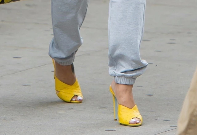 Az énekesnő feltette magában, hogy mostanában az összes cipőviseléssel kapcsolatos íratlan stílusszabályt felrúgja. Láttuk már zokni-szandál összeállításban, de a teljesen átlátszó tűsarkúja sem volt akármi.