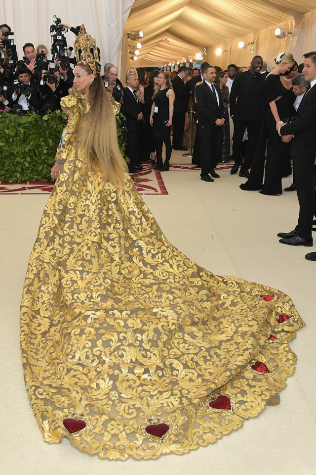 Sarah Jessica Parker Met gálás belépőjét minden évben úgy várjuk, mint a Messiást, amit az idei kontextusban a szó szoros értelmében kell venni. A színésznő egy lélegzetelállító, barokkos túlzásoktól túlcsorduló, arany hímzésekkel borított Dolce & Gabbana Alta Moda ruhában jött ünnepelni a Met gála legújabb divatkiállítását.