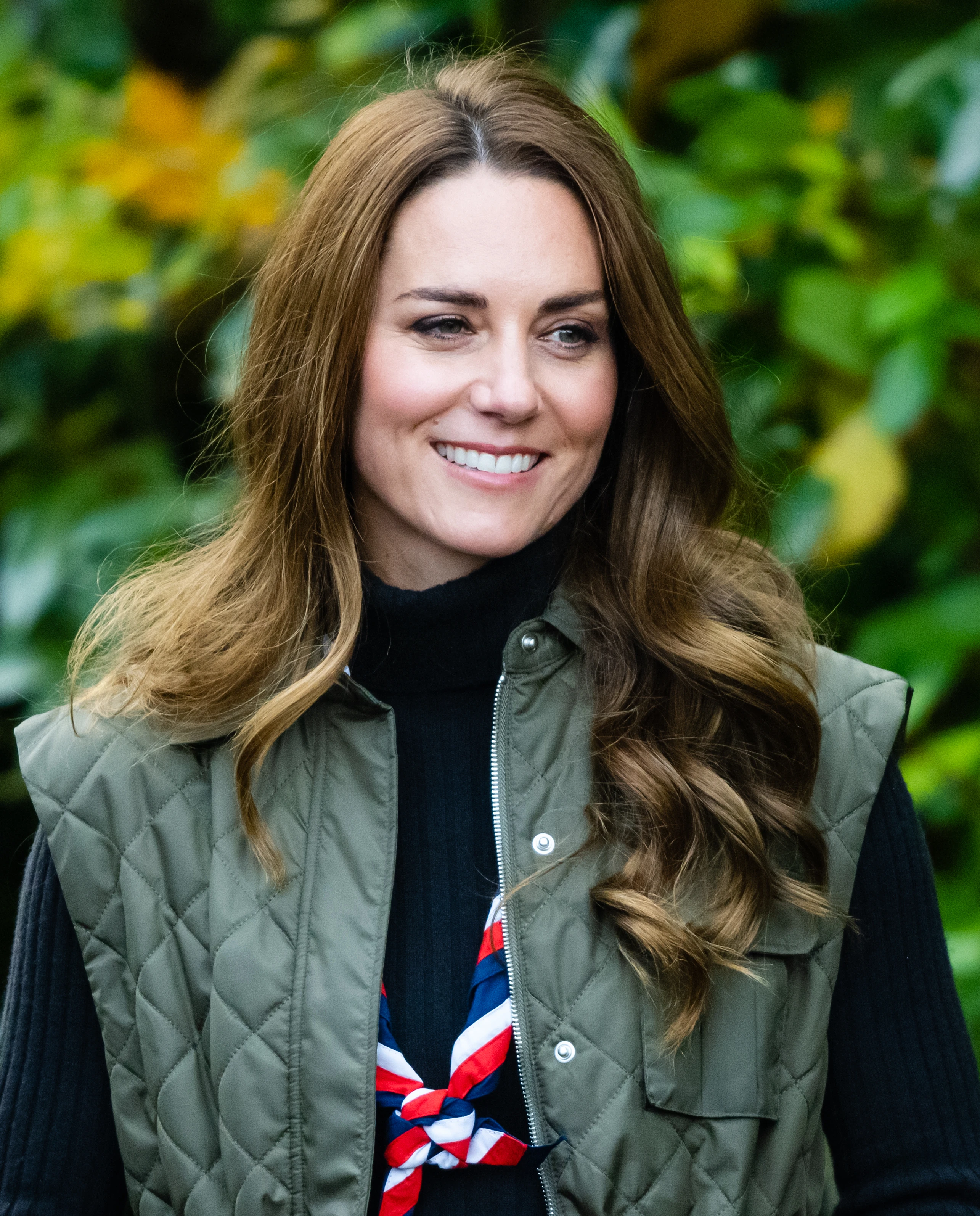 A hercegné a helyzethez illendően vagány kirándulós szettben volt, a gyönyörű haját pedig hullámos loknikba csavarták, hihetetlenül gyönyörű volt az őszi színekben: