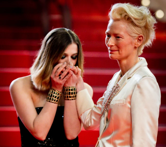 Annál is inkább, mivel Tilda Swinton többször is dolgozott együtt már a rendezővel. A színésznőt a vörös szőnyegre nem más kísérte el, mint a 21 éves lánya, Honor Swinton Byrne, aki egyébként anyukáját követve színésznőként bontogatja a szárnyait. Az anya-lánya páros kézen fogva érkezett, és talán az egész fesztivál eddigi legmeghatóbb momentumát is hozták össze, amikor Honor a fotósok előtt egyszerűen kezet csókolt az édesanyjának. Elképesztően szép pillanat volt!