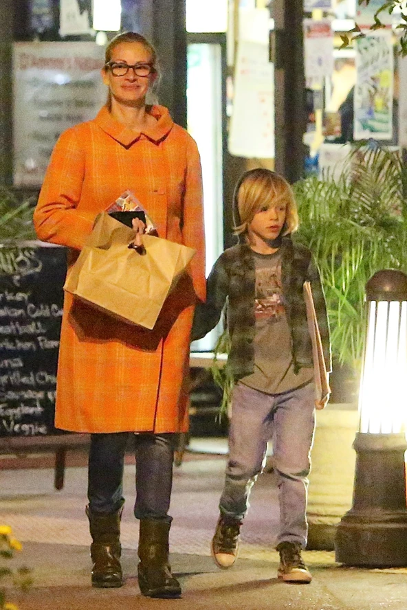 Julia Roberts többször is nyilatkozott már arról, hogy hírneve ellenére is igyekeznek normális családi életet élni, amelyben minden úgy zajlik, mint bármilyen más családnál. Nos, ha nagy ritkán látjuk a színésznőt a gyermekeivel, akkor tényleg ilyen hétköznapi helyzetekben kapják lencsevégre, például vásárolgatás közben, vagy mint most is, éppen egy vendéglői vacsora után. Ikrei ebben a hónapban már 10 évesek lesznek, a kislányt már többször is láttuk vele, de Phinnaeus-t eddig még nem. Igazán vagány kis csemete. Nagyon cukik így együtt, nem?