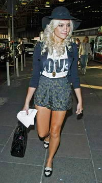 A londoni repülőtéren egy igazán nyárias szettben kapták lencsevégre a fiatal popsztárt, aki bár leginkább a fekete-fehér kombinációkat kedveli, de most kihasználva az évszak adta lehetőségeket egy kék szettben jelent meg. A minizakó különösen remek darab, igaz az állatmintás szoknyácska is pompás. A kalap abszolút illik a legújabb trendekhez, kár hogy a fekete-fehér topánka kicsit megbontja az összképet. Neked hogy tetszik Pixie Lott szerelése?