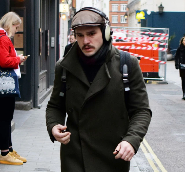Kit Harington a Hamisítatlan Vadnyugat című Sam Shepard darab londoni színházi bemutatóján. A bajuszt valószínűleg eredetileg a szerep miatt növesztette: