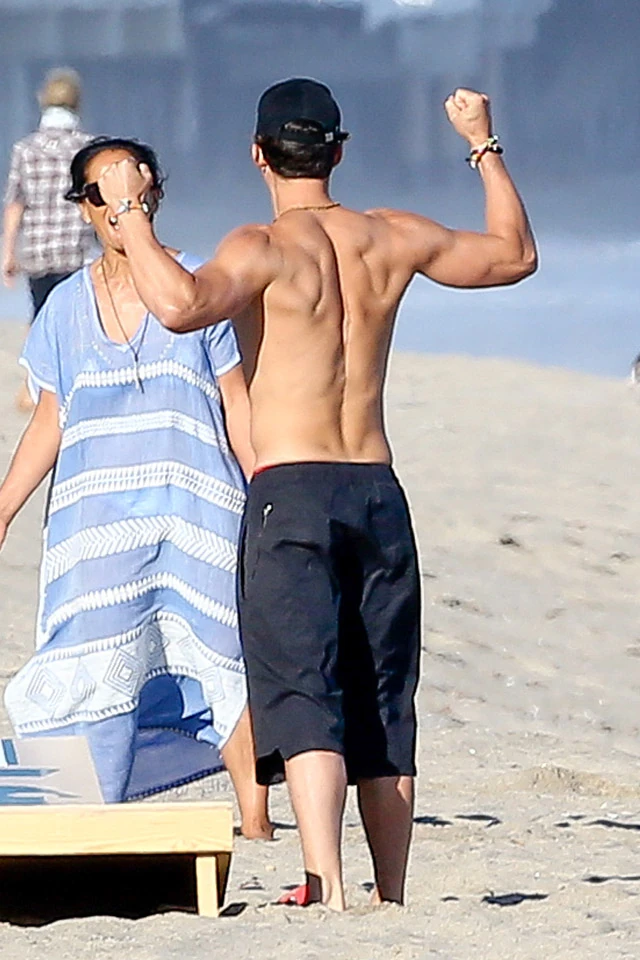 A félisten Orlando Bloom éppen az egyik szörfös haverjával lazul Malibun a tengerparton, és közben ilyen látványt nyújt.