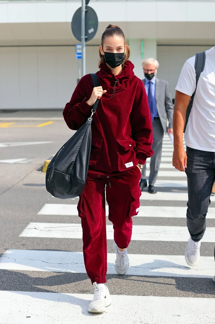 Már a landolása is igazán vagány volt, egy kényelmes, bordó melegítőben érkezett Milánóba: