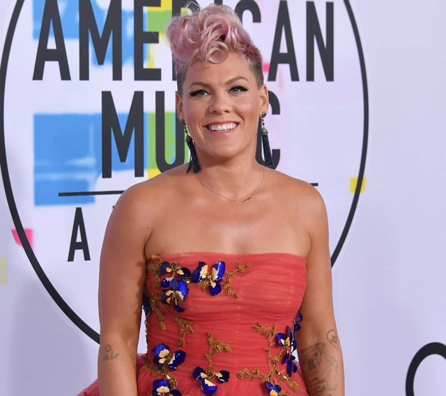 Pink férjével, Carey Harttal érkezett az American Music Awards eseményére, és egy olyan elképesztő szettet választott ezúttal, amiben olyan, mintha most vették volna le egy játékbolt polcáról. Pink rózsaszín fodros Monique Lhullier estélyije garantáltan az idei legdurvább szettje.