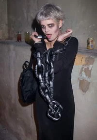 A fiatalabbik Geldof-lány nem a ruhára, hanem a kiegészítőkre és a sminkre fektette a hangsúlyt. Pixie Geldof, Henry Holland divattervezővel bulizott, természetesen nem maradhatott el a beöltözés sem. A társaság összebeszélt, és az idei Halloweenre igazán ijesztő jelmezeket választottak. Pixie egyszerű fekete ruháját remekül feldobta a hatalmas lánc, no és persze a zombi-smink. Hogy tetszik a kisebbik Gedof-lány hideglelős jelmeze?