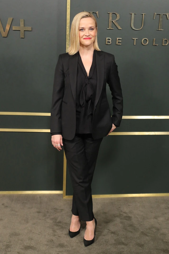 A 43 éves Witherspoon mindig is jól öltözködött, és a fekete erejét sem vetette meg soha, a kis fekete ruhák épp olyan jól állnak rajta, mint a csillogó estélyik. Az AppleTV egyik új sorozatának a premierjén egy vagány fekete nadrágos szettben jelent meg és el kell ismerni, hogy hozzá még ez az üzleti stílus is remekül passzol.