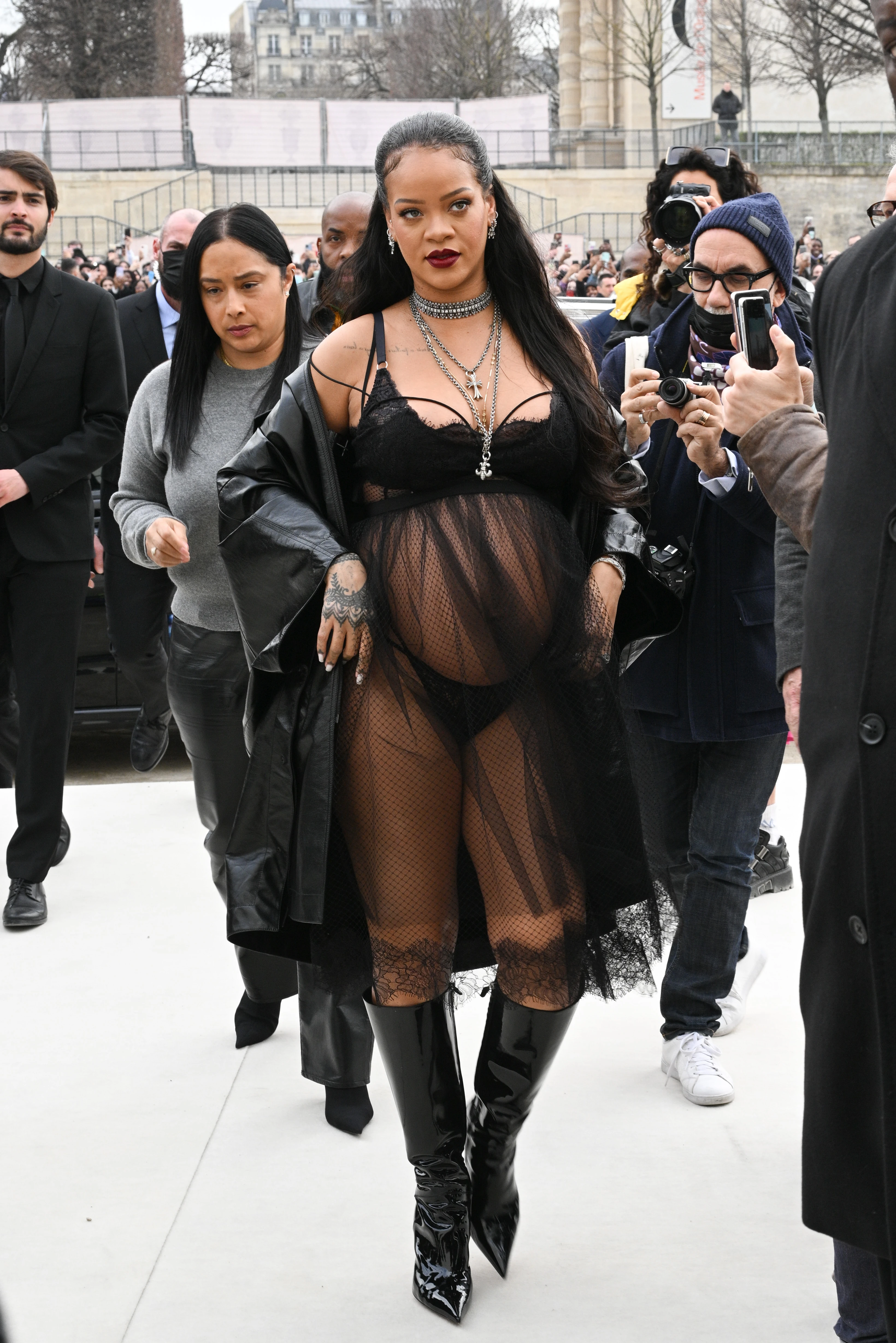 Rihanna áttetsző kombinéban mutatta meg kerek hasát a Dior bemutatóján
