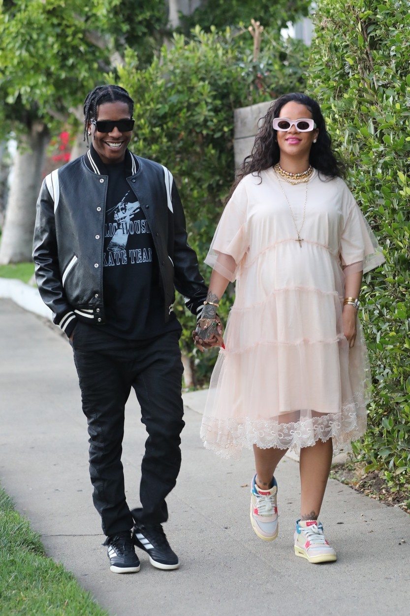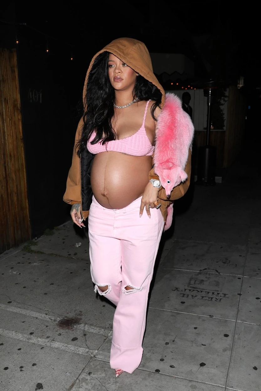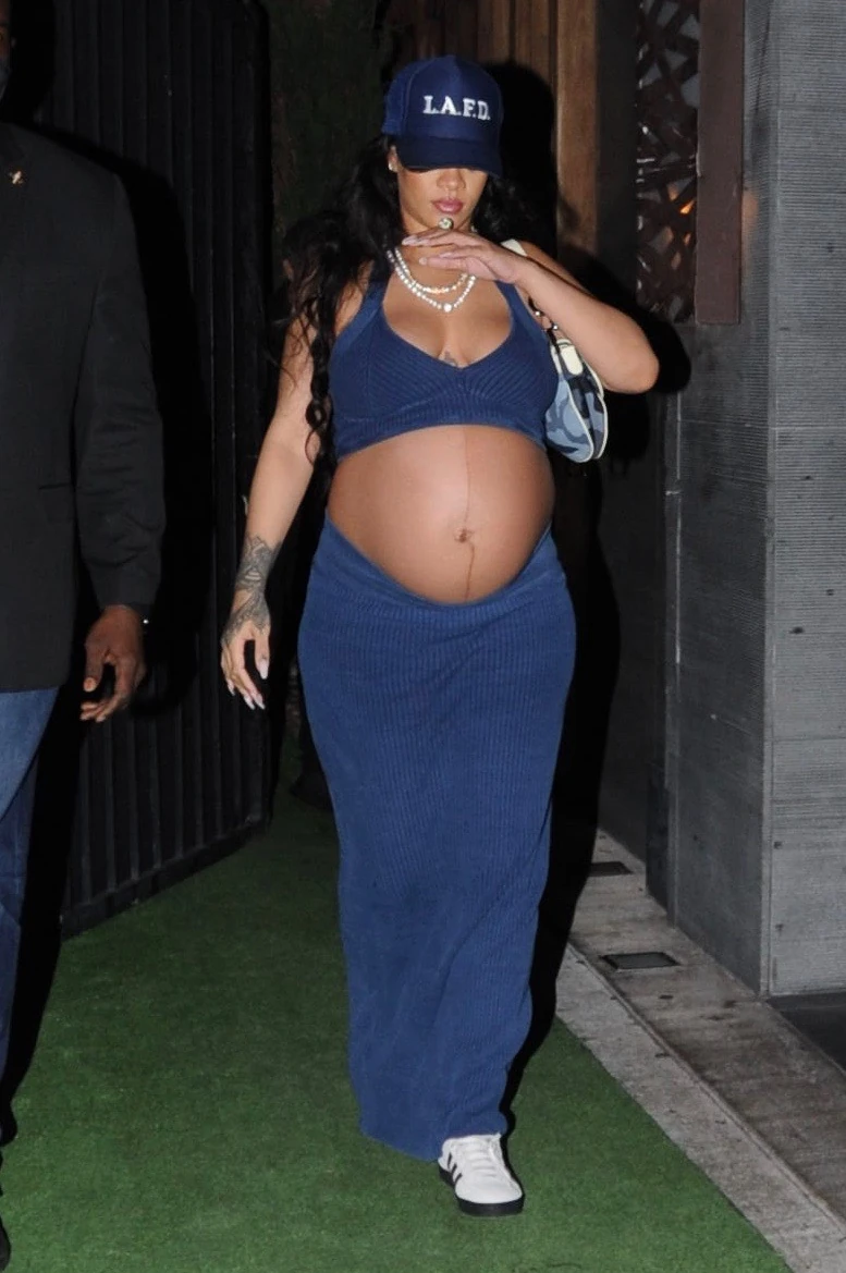 Rihanna rendszeresen olyan szetteket választ utcai megjelenéseihez, amiből a már igencsak kerek hasa kilátszik, ez alól nem képez kivételt sem a vörös szőnyeg, sem a díjátadók, sem a divathetek, Riri mindig önmagát adja.