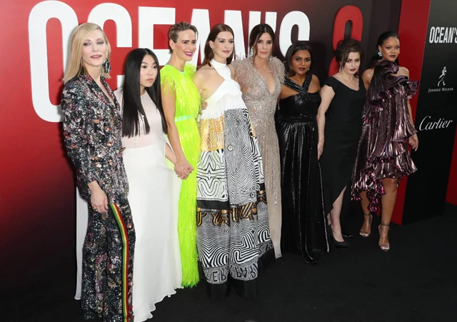Az Ocean's 8: Az évszázad átverése eddigi népszerűsítő vetítésein és sajtótájékoztatóin a szenzációs sztárgárda nem képviseltette magát 100%-ban, Helena Bonham Carter és Rihanna sem mutatkozott eddig Sandra Bullock, Cate Blanchett, Mindy Kaling, Sarah Paulson, Anne Hathawaya és Awkwafina társaságában a vörös szőnyegen. A New York-i díszpremiert azonban már a film egyetlen sztárja sem hagyta ki, de persze mondanunk sem kell, hogy az estét Rihanna ragyogta be csak igazán.