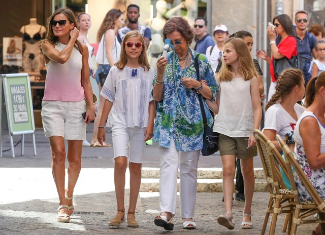 A királyi pár és két szépséges kislányuk éppen Mallorcán nyaral, a hivatalos nyaralós fotókat már láthattuk, és ezen is megállapítható, hogy a királyné mennyire emberi. Most azzal került a címoldalakra, hogy nyaralásuk alatt rövidnadrágban császkált a városban lányaival, Leonóra és Zsófia hercegnőkkel, valamint Fülöp király édesanyjával, Zsófia királynővel.
