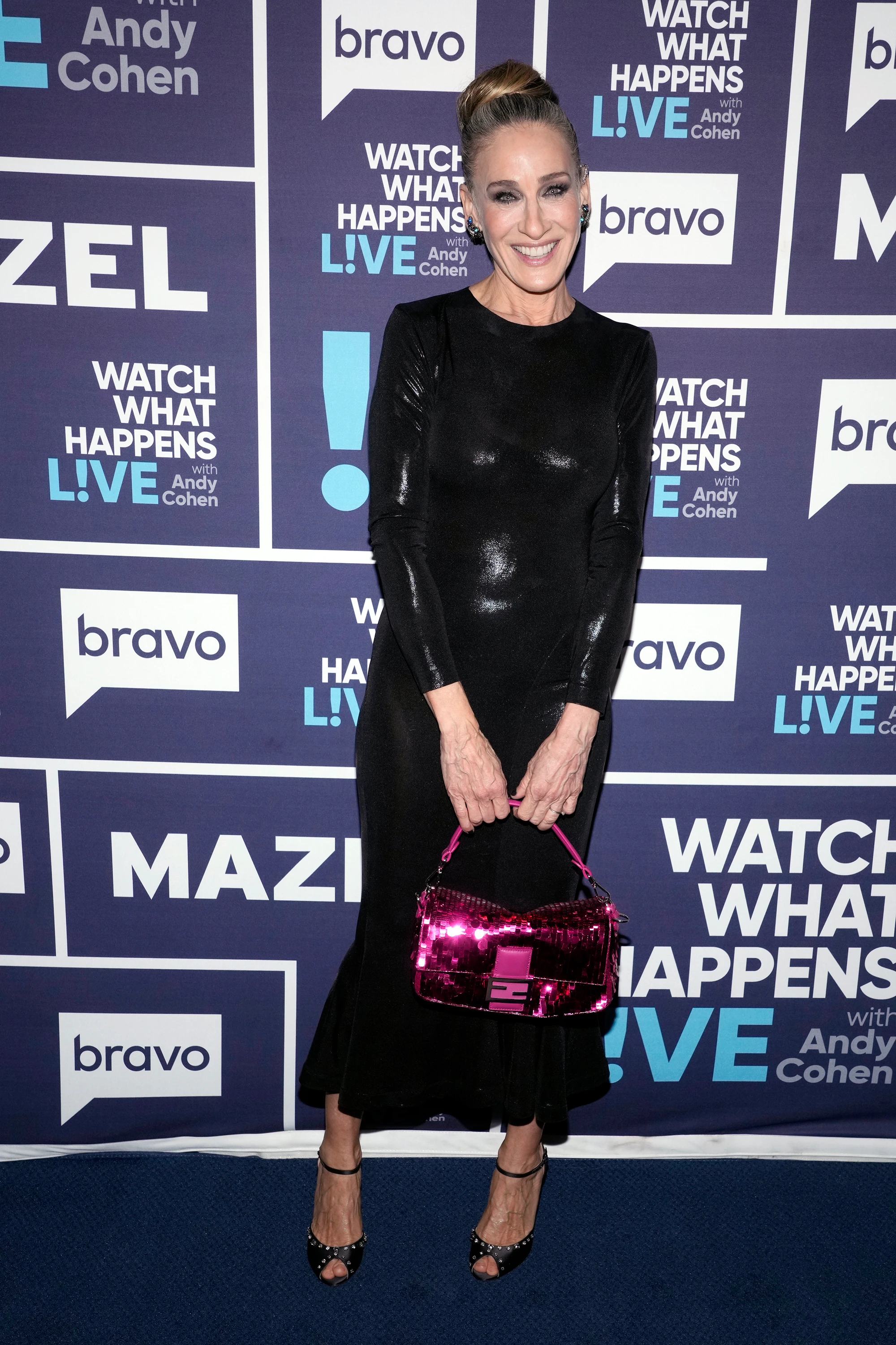 Rögtön utána a nagyon jó barátja, Andy Cohen műsorának volt a vendége, ahol többek között megtárgyalták Samantha hiányát az És egyszer csak... sorozatból, férjével, Matthew Broderick-kel közös első csókjukat, vagy éppen azokat a szetteket, amiket megbánt a múltjából. Mindezt pedig egy nagyon sikkes, fényes fekete szettben teszi, annyira jól néz ki!