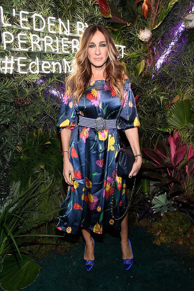 Előtte nem sokkal Miamiba látogatott el egy divatpartira, ahova egy gyönyörű, virágos Rossella Jardini ruhában érkezett és ABBAN a bizonyos Manolo Blahnik cipőben, amiben Carrie is hozzáment Mr. Bighez.