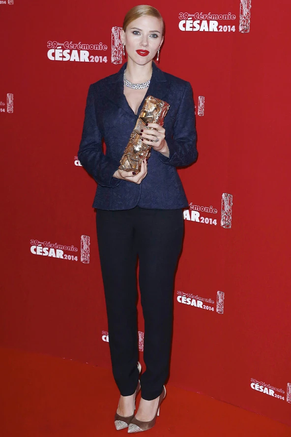 Scarlett Johansson óriási megtiszteltetésben részesült, hiszen az életműdíjat idén neki ítélték. A színésznőtől megszokhattuk, hogy a vörös szőnyegen lehengerlően nőies a megjelenése. Nos, most kisebb meglepetést okozott, hiszen ezúttal egy kicsit fiúsabb, üzletasszonyosabb szettet választott. Ez a Dior nadrágkosztüm talán egy kicsit túl szigorúvá teszi a megjelenését. Azt nem állítanánk, hogy nem áll jól neki, de mi valahogy jobban kedveljük, amikor klasszikus estélyiben lép vörös szőnyegre, te hogy vagy ezzel?