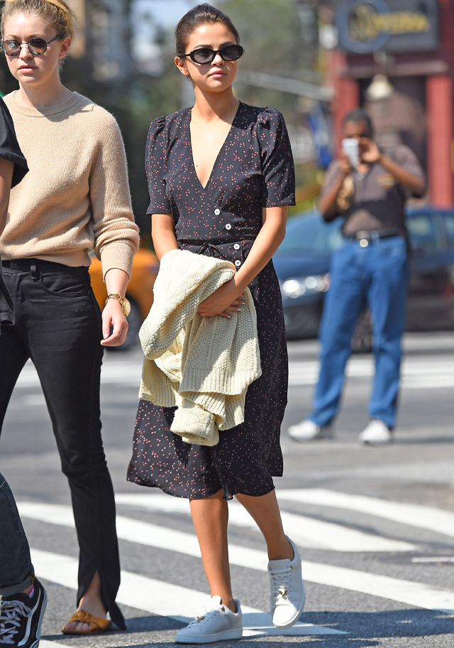 Selena Gomez utcai stílusa abszolút hordható, így aztán nem véletlenül figyelik sokan, hogy egy-egy szezonban mire szavaz a popsztár. Most az átmeneti időre egy hosszú apró virágmintás ruhát húzott, amihez egy kötött kardigánt passzintott. Első pillanatra talán nagymamásnak tűnik a szerelése, de idén ősszel az ilyen hosszú ruhák nagyon menők lesznek, pláne ha egy sneakerrel kicsit vagányabbá teszed az összhatást.