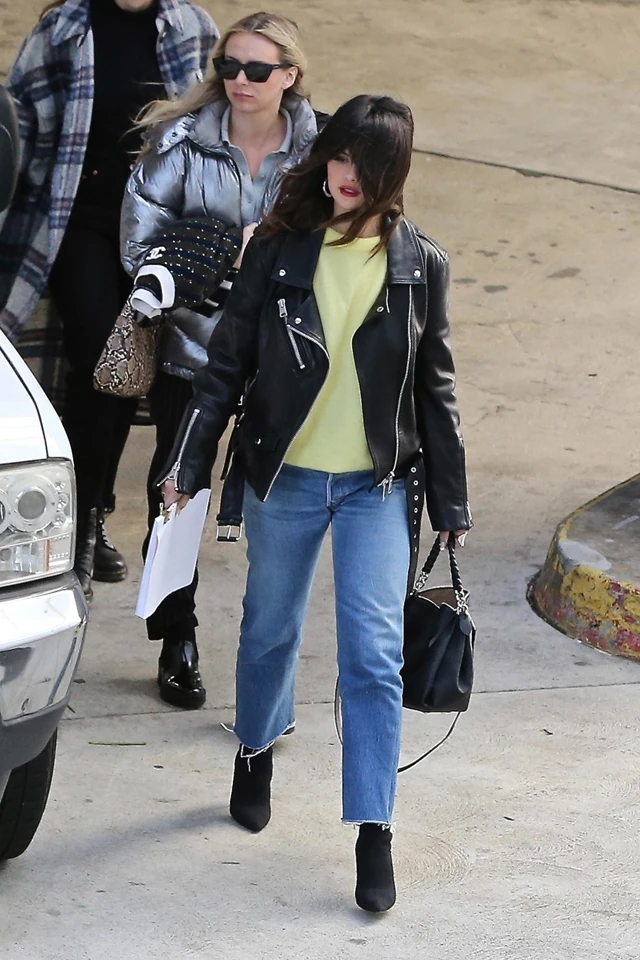 Nemrég Los Angelesben kapták lencsevégre, ahol barátai társaságában egy új irodahelységet vettek szemügyre. Az üzleti találkozóra Selena Gomez menő rocker csajként érkezett, egyenes, szaggatott szárú farmert viselt fekete magas sarkú bokacsizmával és világossárga pulcsival, amire egy vagány, motoros bőrdzsekit vett fel. A szettet egy nagy, láncos, fekete táskával egészítette ki, illetve tökéletes hullámokba csavart frizurával és szexi, vörös rúzzsal és karikafülbevalóval.