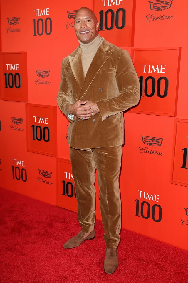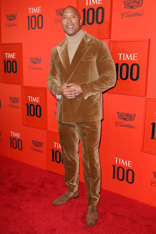 A Jumanji sztárját a következő két évben számos produkcióban láthatjuk majd, úgyhogy garantáltan nemcsak a jótékonykodó, aktivista hírességek között olvashatod majd a nevét, csodálkozunk hogyan is jut ennyi mindenre ideje családja mellett is. A Time gálára egy világosbarna bársony öltönyben érkezett, amit tejeskávé színű garbóval viselt. Meglepő választás részéről, de minél többet nézed, annál jobban tetszik.