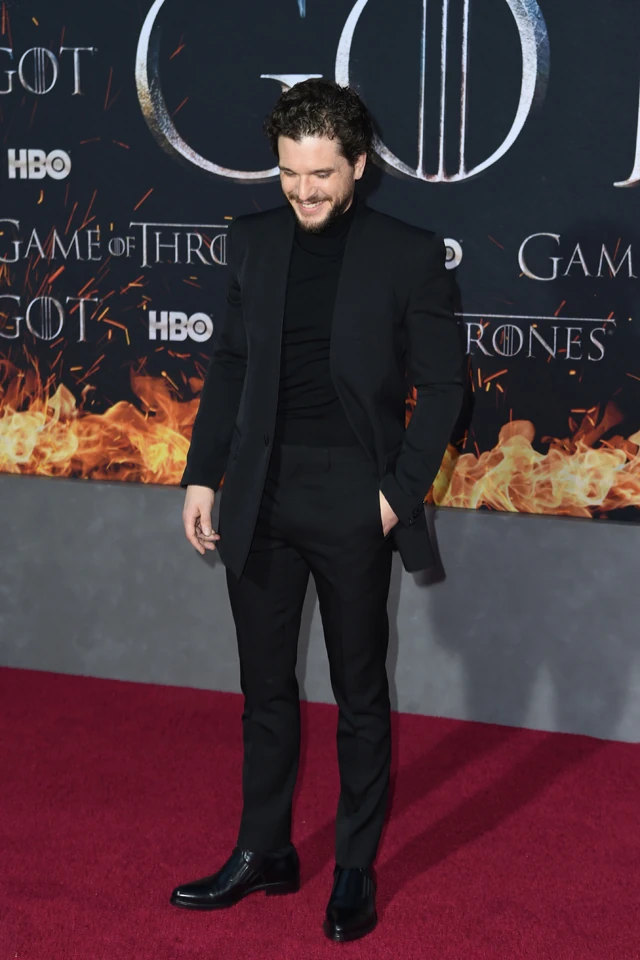 Kit Harington valószínűleg nem csak annyit tud a divatról, mint amennyit Havas Jon az életről, merthogy ez a fekete garbó és a fekete méretre szabott öltöny kombináció kifejezetten stílusos, és nagyon jól áll neki.