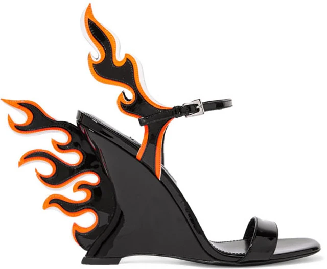 A lángcsóvákkal vagánnyá varázsolt magas talpú szandál éppen az a darab, amit viccből biztos hazavinnél, de aztán évekig kerülgetnéd a lakásban, hogy majd egyszer farsangra felveszed.