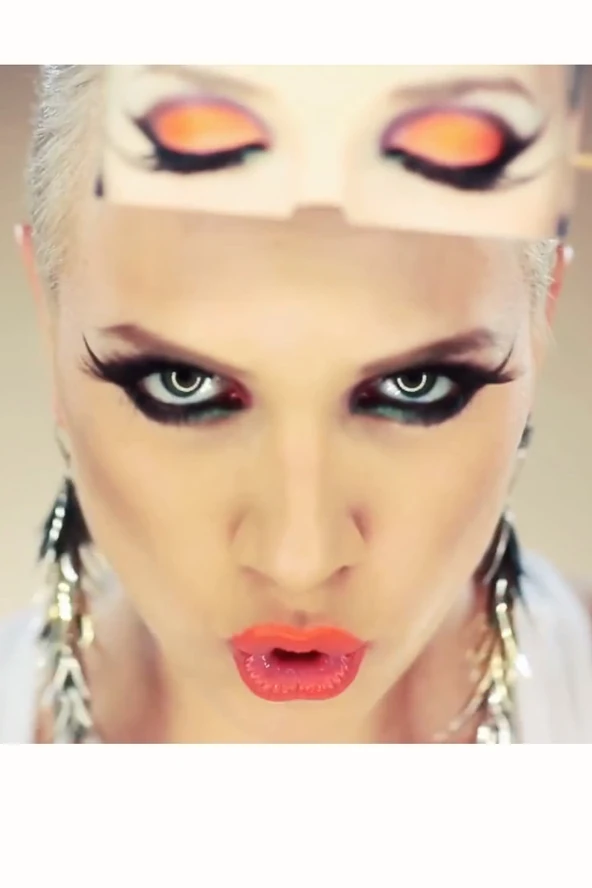 Ebben a klipben Gabi mozgó szemhéját extrém, pinkes-korallos színnel festették, a mélyítővonalban pedig feketével dolgoztak. Ha ez tetszik, Gabi sminkjéhez hasonlóan alul-felül is kontúrozd a szemed fekete ceruzával és egy picit satírozd is el.